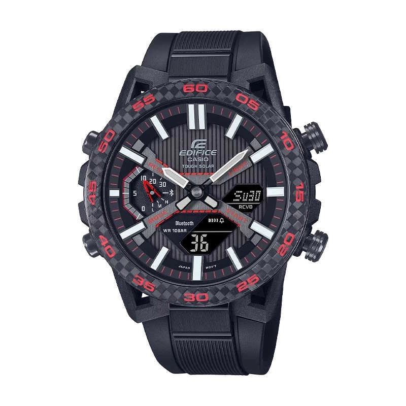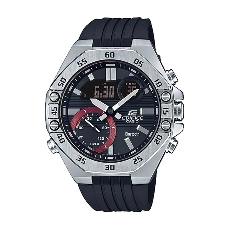 شاهکار کاسیو برای دوستداران سرعت! ساعت مچی مردانه کاسیو ادیفایس دارای قابلیت سرعت سنج است. ساعتی که می توانید سرعت اتومبیل ها را در پیست مسابقات اندازه گیری کنید. اگر فراموشکار هستید و معمولا موبایلتان را گم می کنید، این ساعت مچی ژاپنی راه حل مشکلاتتان است. این ساعت می تواند کاری کند که موبایتان به صدا در آید تا به راحتی آن را پیدا کنید. از لحاظ ظاهری رنگ های این ساعت یادآور ماشین های فرمول یک و هیجان سرعت است. بند این ساعت کاسیو ژاپنی از جنس رزین است تا در استفاده های طولانی مدت هم حس راحتی داشته باشید. وزن سبک این ساعت باعث می شود که فشاری به مچ دستانتان وارد نشود و حتی هنگام ورزش کردن هم بتوانید با آسودگی از آن استفاده کنید. از بین تمام مدل های ساعت کاسیو ادیفایس، ساعت ECB-950MP-1ADF یکی از جذاب ترین هاست که هم ظاهری اسپرت و در عین حال کلاسیک دارد و هم قابلیت های بینظیری را در اختیارتان قرار می دهد. ساعتی که می توانید با آن هم شنا کنید، هم به پیست اتومبیل رانی روید و هم در جلسات کاری شرکت کنید!
