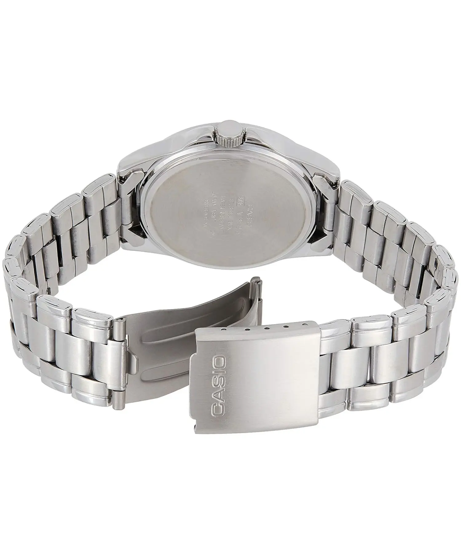 دستهبندی: ساعت مردانه بند استیلبرند: کاسیو (CASIO)مبدا برند: ژاپنمناسب: مردانهکاربری: کلاسیکگارانتی : یکساله پوزیترونجنس قاب : استیلابعاد قاب ( طولxعرضxضخامت) : 43.3×38.4×8.8 میلی مترتقویم : نمایش تاریخوزن : 92 گرمرنگ صفحه : سرمه ایمقاومت در برابر آب تا : 50 مترمقاومت در برابر آب : فشار 5 اتمسفرجنس بند : استیل ضد زنگجنس شیشه : کریستال معدنی (Mineral Crystal)فرم قاب : دایرهدقت ساعت : ±20 ثانیه در ماهنمایش بیشتر