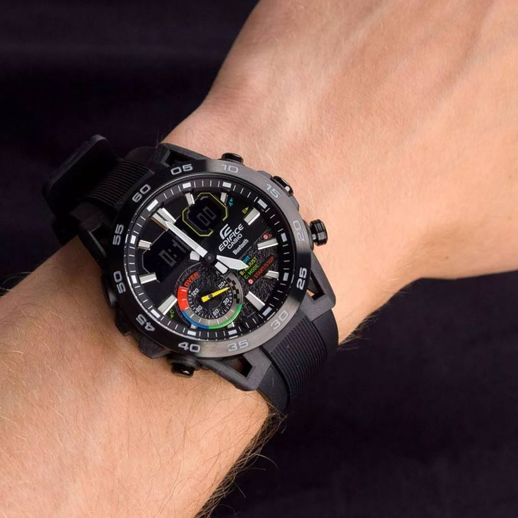 اتصال به گوشی : امکان اتصال به موبایل از طریق بلوتوث، ردیاب موبایل، تنظیم خودکار زمان ساعت، انتقال داده کرنومتر به موبایل، قابلیت تنظیم ساعت با گوشی موبایل