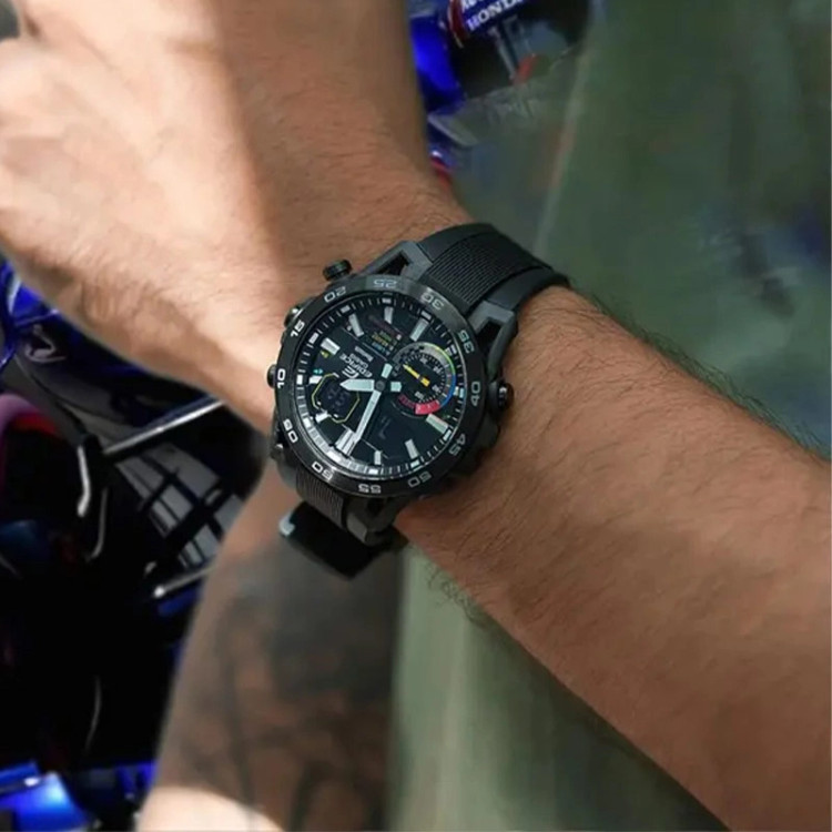 سایر ویژگی ها : حرکت موقتی عقربهها (عقربهها با فشردن کلید موقتاً کنار میروند تا مانع دید صفحه دیجیتال نشوند.)